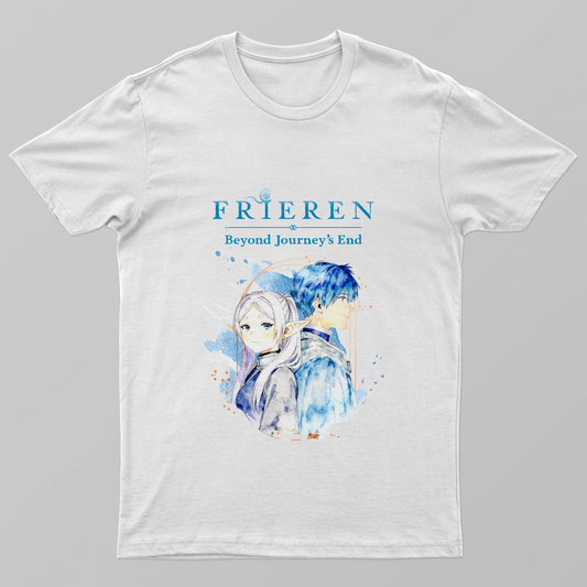 Frieren Beyond Journey’s End | Frieren & Himmel Fantasy Anime Watercolor Illustration Unisex T-shirt by Aditi Banerjee
