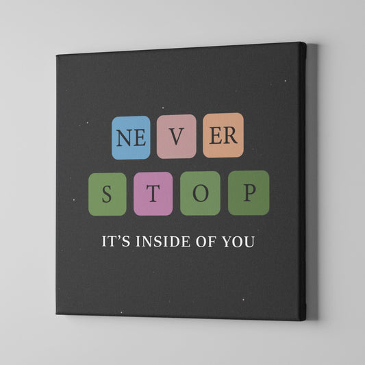 Never Stop, It's Inside of you Canvas Print by @Dsignpath