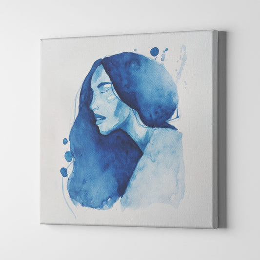 Calm woman blue watercolour Canvas Print by @anshika.creates
