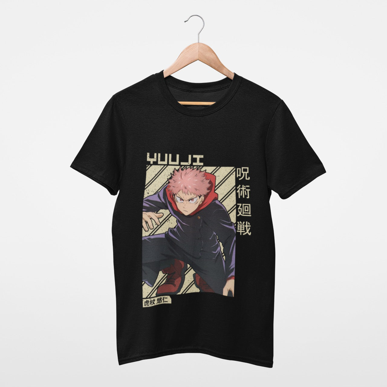 Whether you're a die-hard Jujutsu Kaisen fan or someone in search of a wardrobe piece that embodies determination and subtlety, this tee effortlessly merges fandom with contemporary style. Elevate your fashion statement, express your admiration for Itadori Yuuji, and make a bold yet refined statement with this Black Cotton T-shirt that captures the essence of valor in the thrilling world of Jujutsu Kaisen. Wear it proudly and let Yuuji's unwavering spirit shine with every step you take.