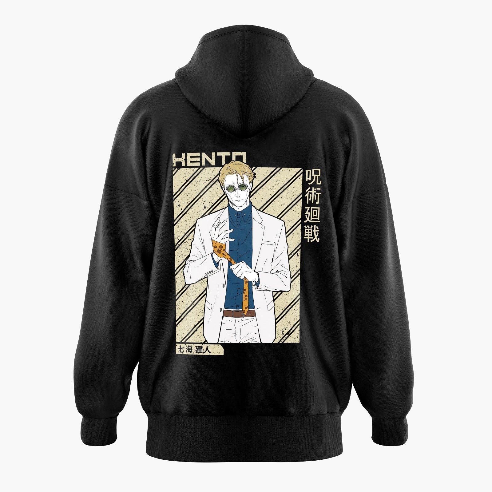 Boldly inscribed in beige, both in English and Japanese characters, "Kento" is at the top, while "Kento Nanami" and "Jujutsu Kaisen" are elegantly written. This dual-language approach celebrates the global appeal of Jujutsu Kaisen, inviting fans worldwide to connect with the magic and intensity of the series.