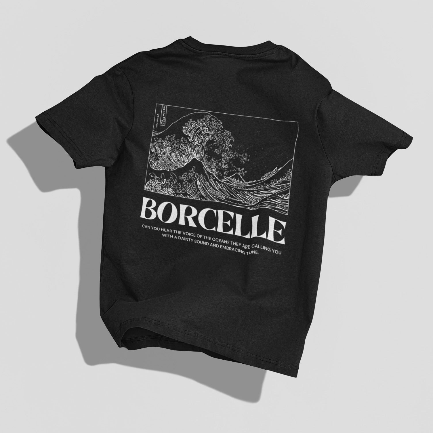 Elevate your fashion game with our Premium Black Oversized T-Shirt - BORCELLE: Embrace the Ocean's Call! This exceptional piece seamlessly blends Japanese artistry with contemporary chic, making it a must-have in your wardrobe. The captivating Japanese-style wave painting on the back, titled "BORCELLE," transforms this tee into a wearable masterpiece.