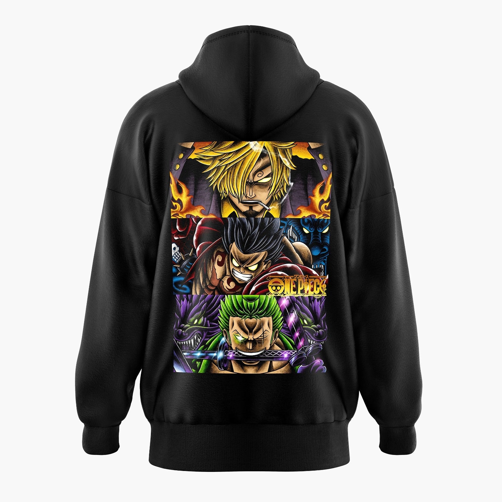 This wearable masterpiece is not just a hoodie; it's a bold expression of your passion for anime and streetwear. The synergy of Sanji, Luffy, and Zoro is depicted through dynamic poses, glowing eyes, and bold design elements. Don't miss your chance to own this exclusive piece where anime meets fashion, and strength takes center stage. Unleash the power, wear the legend!