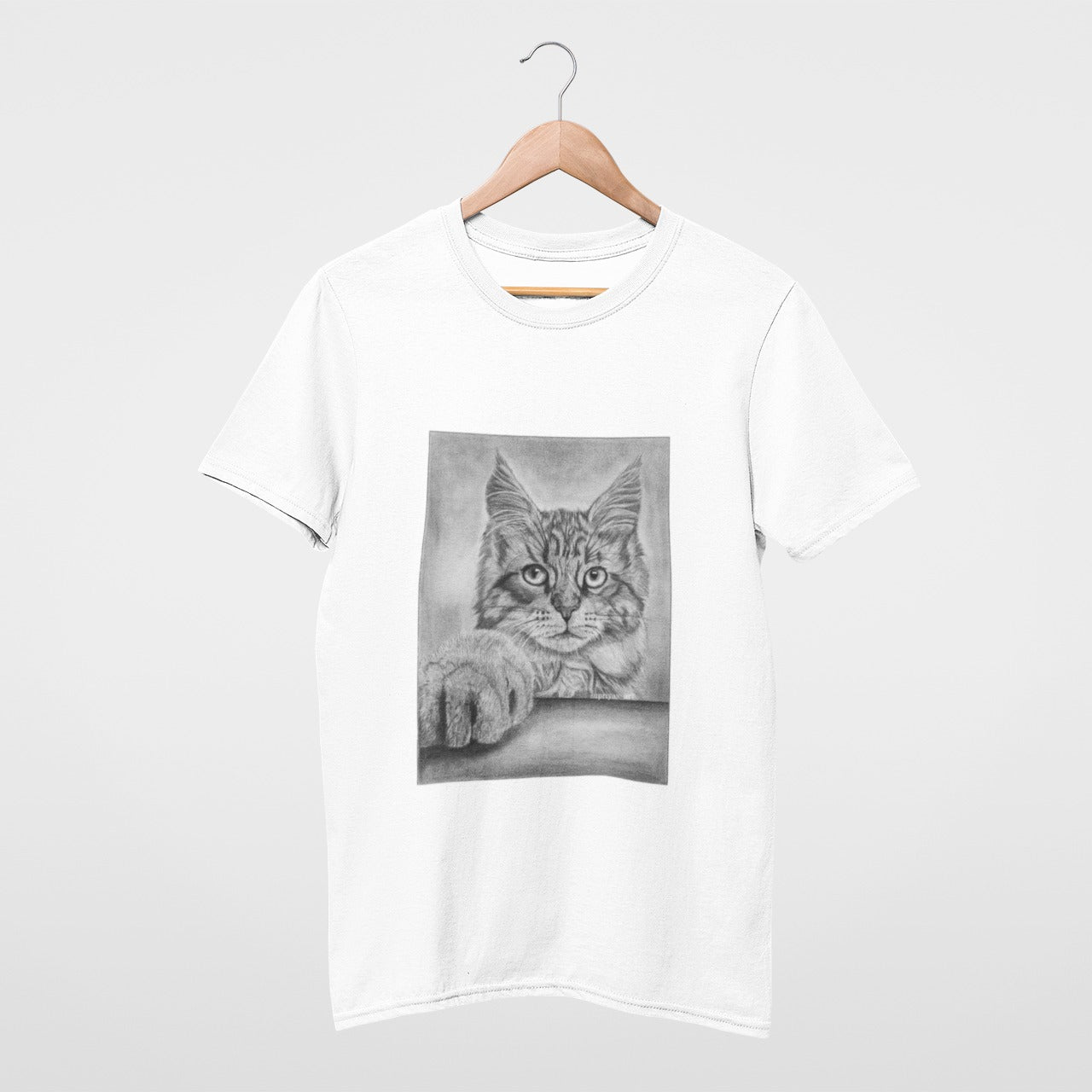 Cute cat pencil sketch white T-shirt from @supriyas_art_
