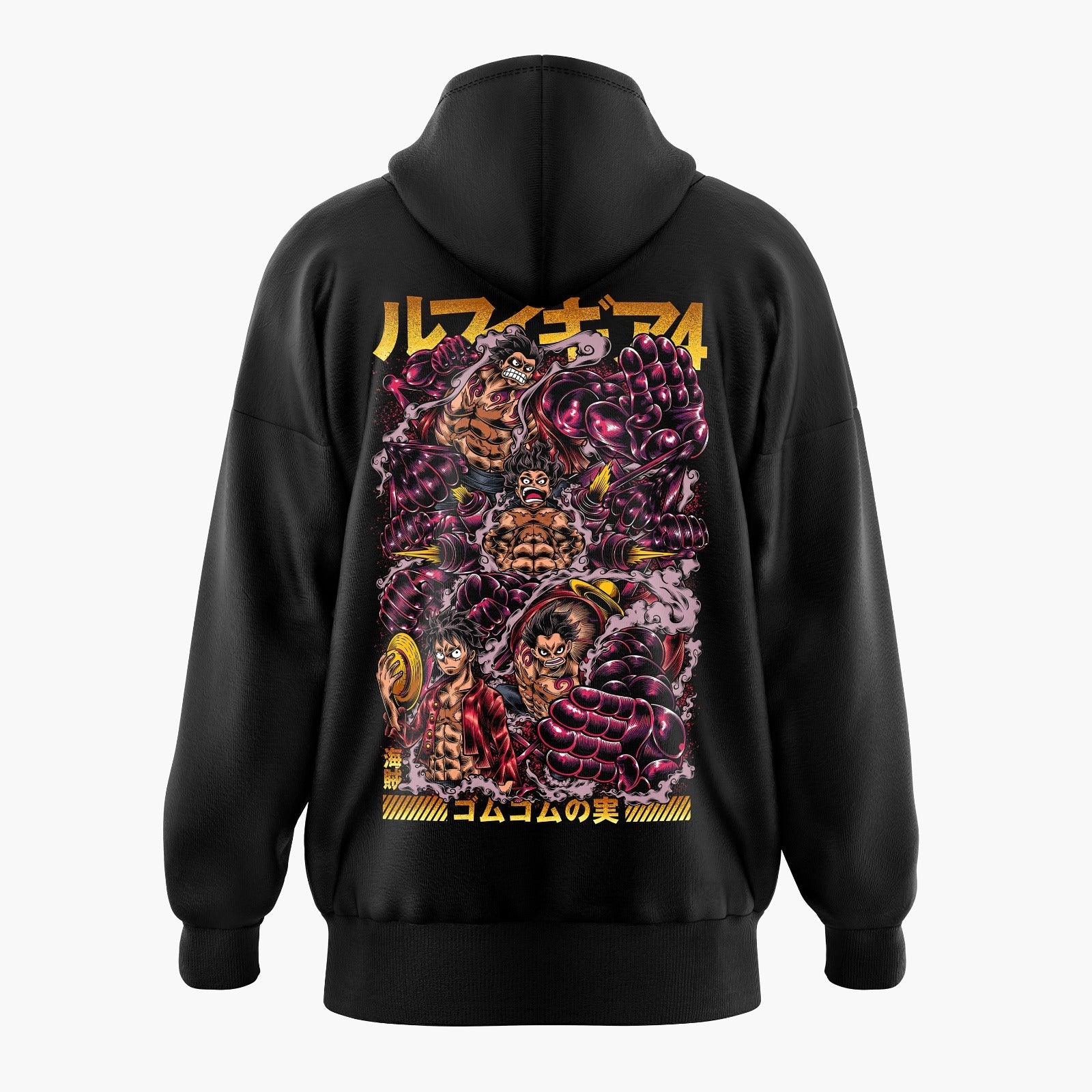 Embark on an epic adventure with our exclusive Monkey D Luffy Gear 4 Premium Oversized Hoodie, a tribute to the boundless spirit of the Pirate King! This wearable masterpiece captures Luffy's unstoppable force in Gear Fourth, with a dynamic back design showcasing him in three powerful stances. "Luffy Gear 4," "Pirate," and "Gum Gum Fruit" are boldly inscribed in Japanese characters, adding cultural elegance to this visually striking design. Elevate your style and immerse yourself in the world of the Straw Hat captain.