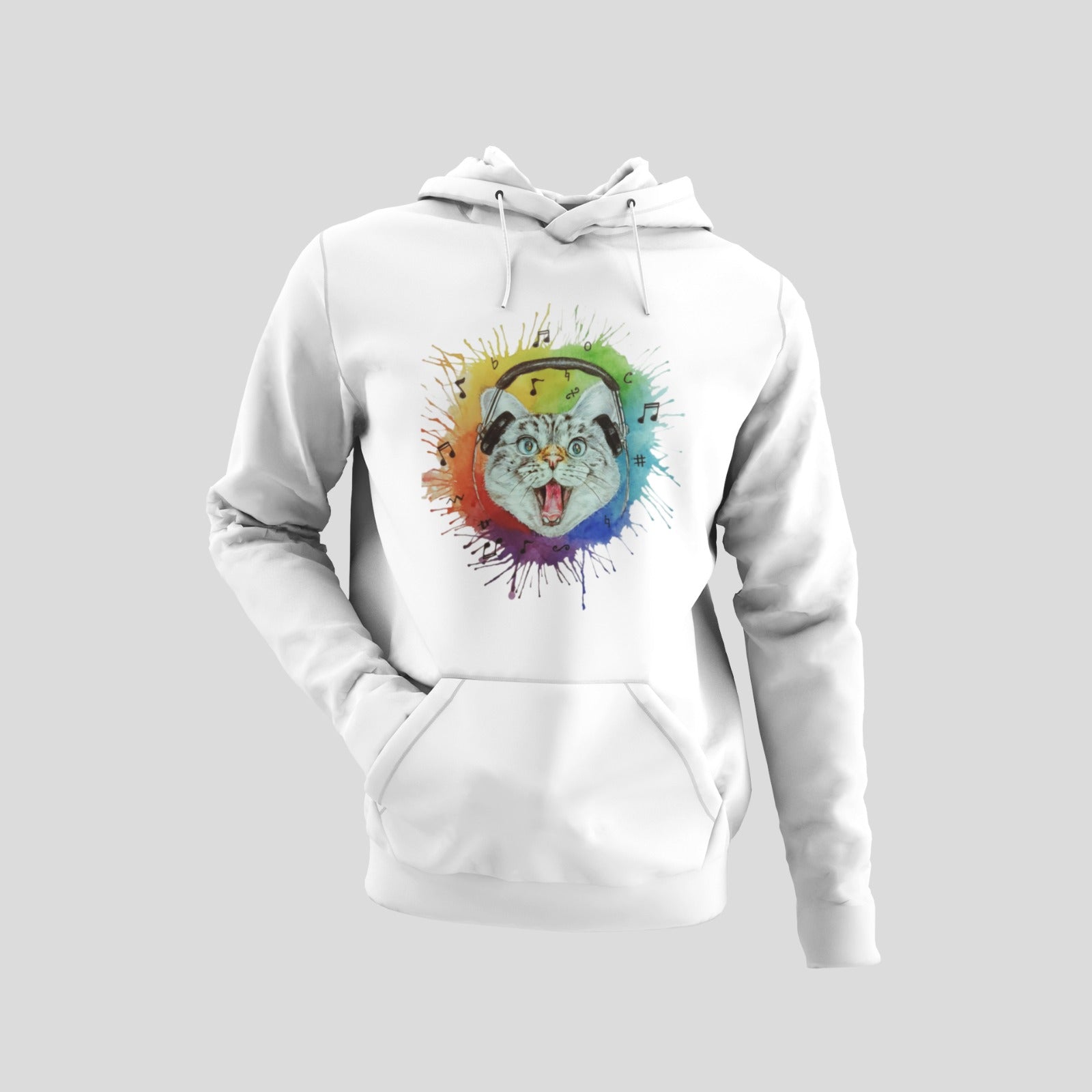 Happy DJ Cat white Hoodie by @tista_art_therapy