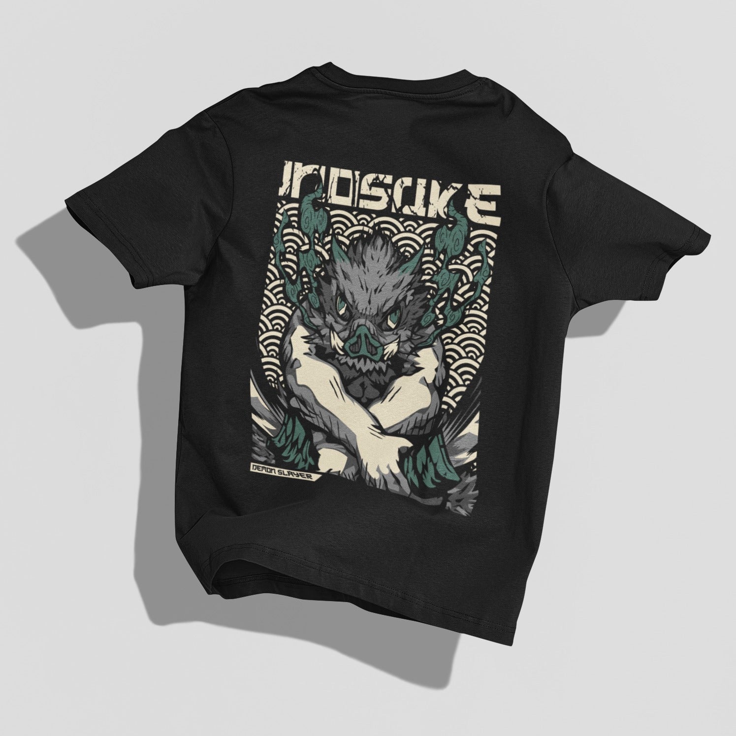 In this striking design, Inosuke dominates the scene, showcasing his unrivaled prowess with Animal Breathing. His name, boldly written in eye-catching bold letters at the top, adds an extra layer of edgy coolness to the ensemble, embodying the fierce and wild nature of the character.