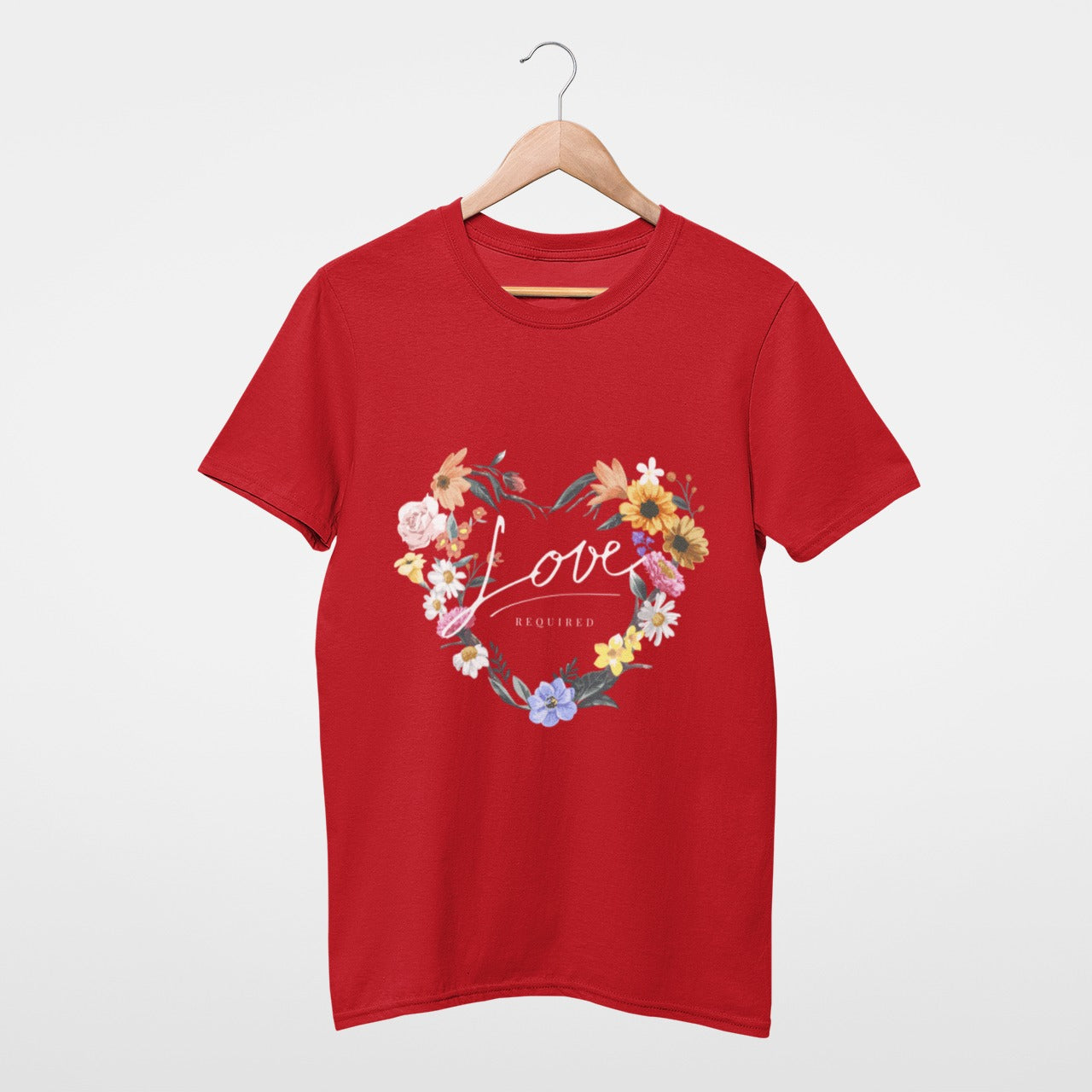 Introducing our enchanting and heartfelt "Love Required" Cotton T-shirt in vibrant red. Crafted from premium quality cotton, this tee is more than just a piece of clothing – it's a celebration of love, beauty, and the joy of connection.