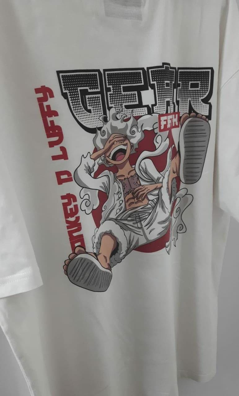 Crafted from high-quality cotton, this oversized white tee offers both comfort and durability, making it perfect for any One Piece fan. Its relaxed fit ensures it’s easy to wear all day long, whether you’re at an anime convention, hanging out with friends, or just chilling at home. The premium, detailed print brings out Luffy’s character, highlighting the epic Gear 5 form in vibrant detail.