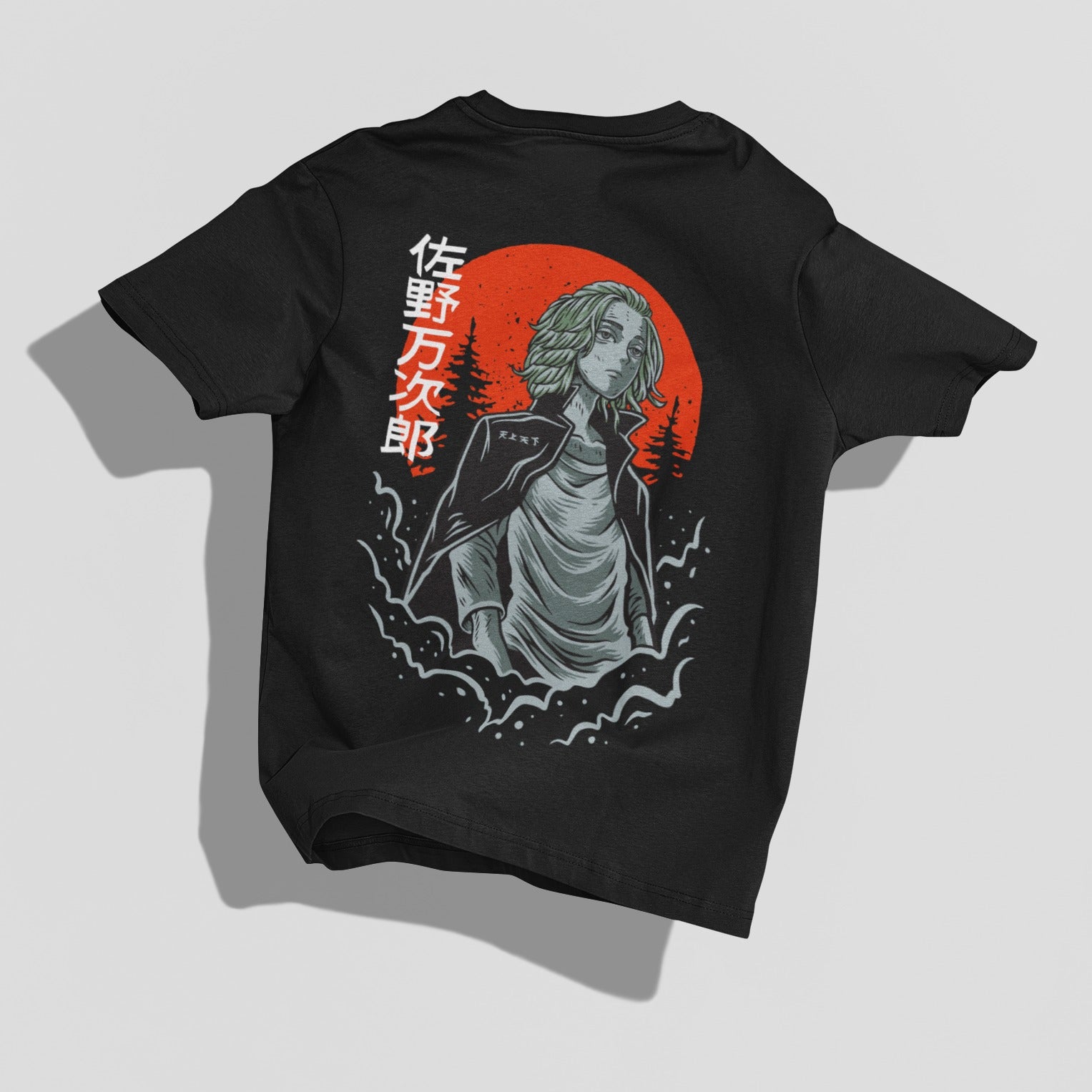 Manjiro Sano, in a calm and collected pose, dominates the design, embodying the essence of Tokyo's gritty and rebellious atmosphere. The oversized silhouette adds an urban and streetwise flair, making this tee a must-have for fans who seek both comfort and a bold nod to the tumultuous universe of Tokyo Revengers.