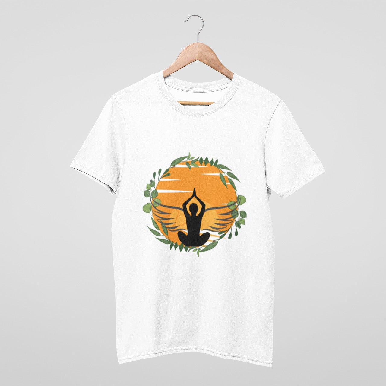 Meditating with wings white T-shirt from @_spooky_pencil _