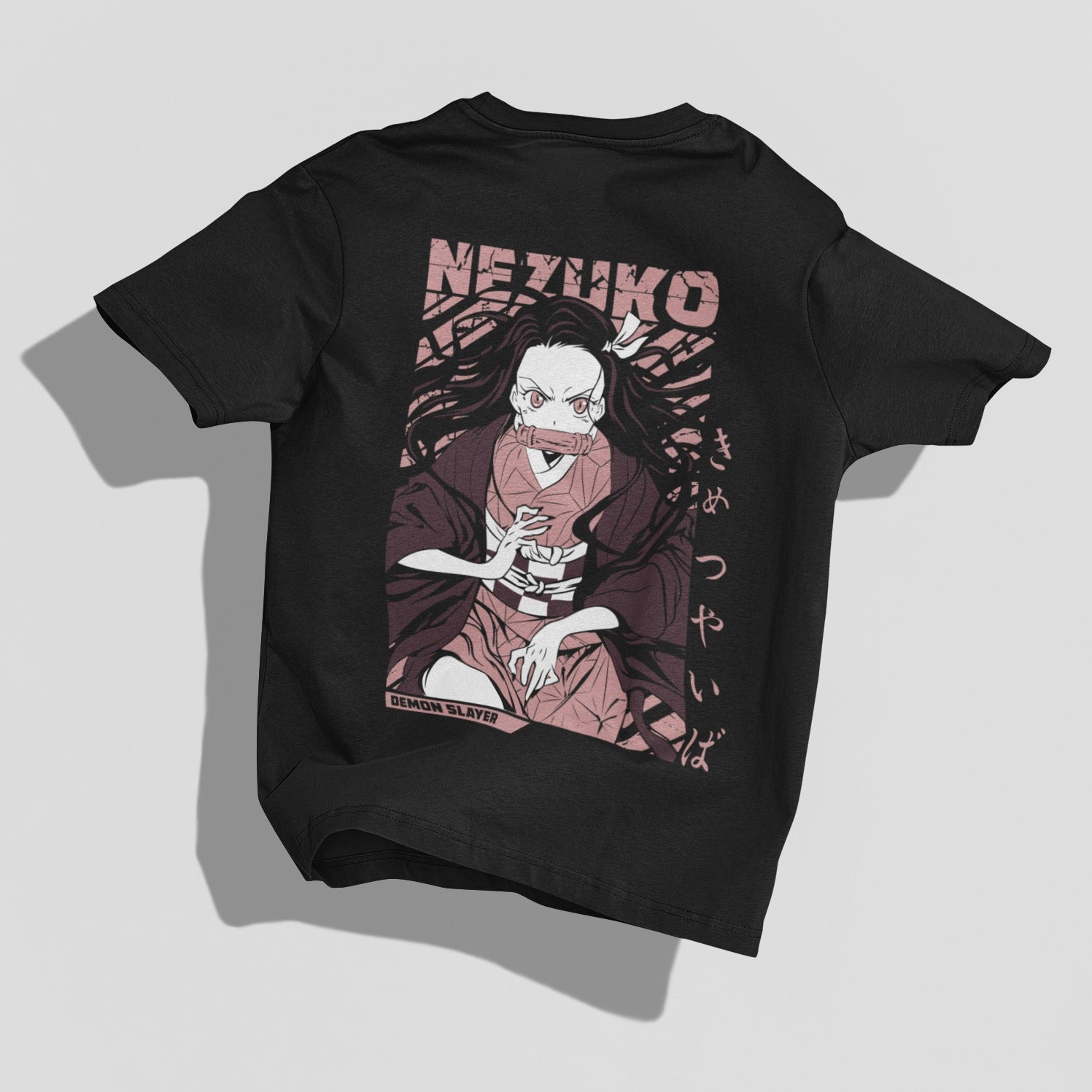 In this striking design, Nezuko takes center stage in the midst of a powerful attack, exuding strength and determination. Her name, boldly written in eye-catching bold letters at the top, adds an extra layer of edgy coolness to the ensemble.