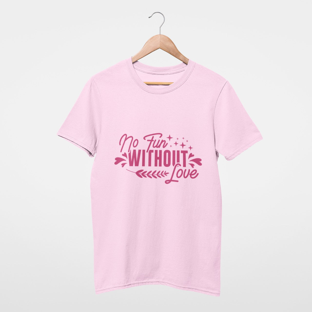 Crafted from premium cotton, the "Love Infusion" tee ensures a comfortable fit without compromising on style. The front graphic boldly declares, "No fun without love," in a captivating magenta hue, embodying the philosophy that every moment is brighter when love is involved.