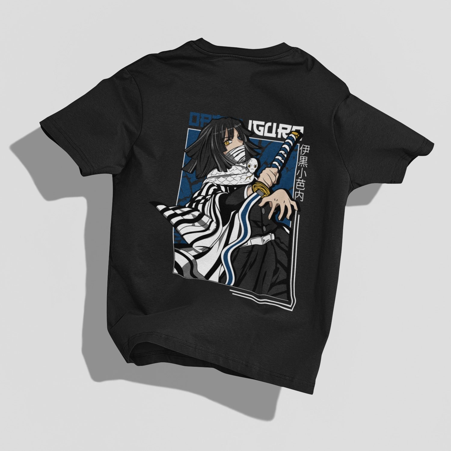 Unleash the serpentine coolness with our Black Cotton Oversized T-shirt, showcasing the enigmatic Obanai Iguro, the Serpent Hashira from Demon Slayer. Crafted from premium black cotton, this oversized tee isn't just clothing; it's a dynamic canvas that pays homage to the mystique and lethal prowess of the Serpent Hashira.