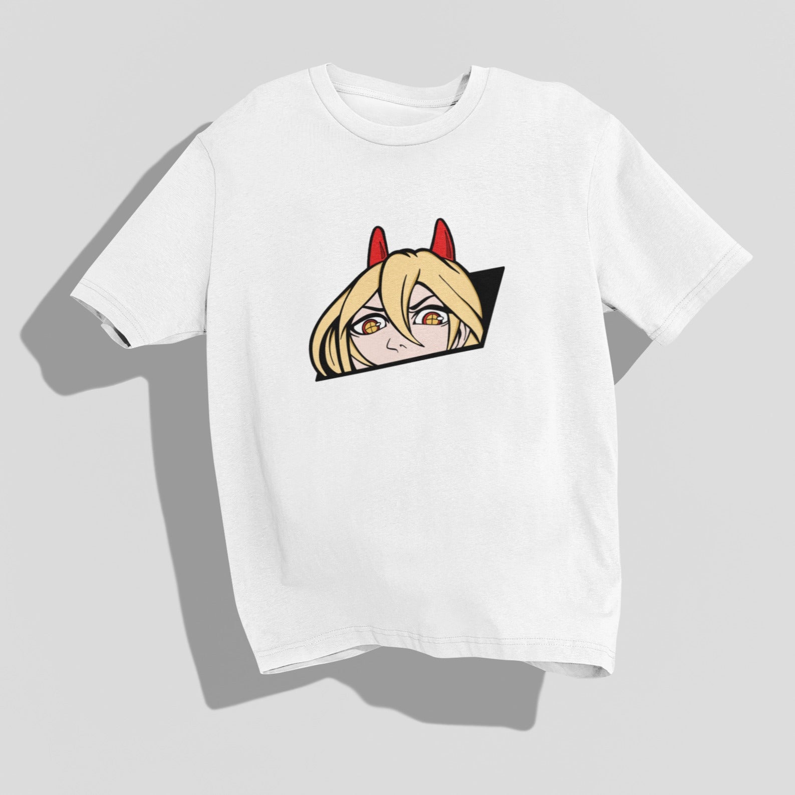 Power is a beloved character from Chainsaw Man, known for her fiery personality and fierce determination. With this captivating graphic adorning your t-shirt, you'll not only showcase your love for the anime but also express your admiration for Power's spirited character.