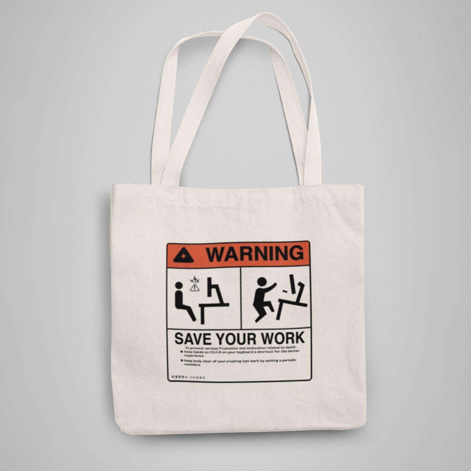 Save your work warning Tote Bag With Zipper by @pankaj.230_5