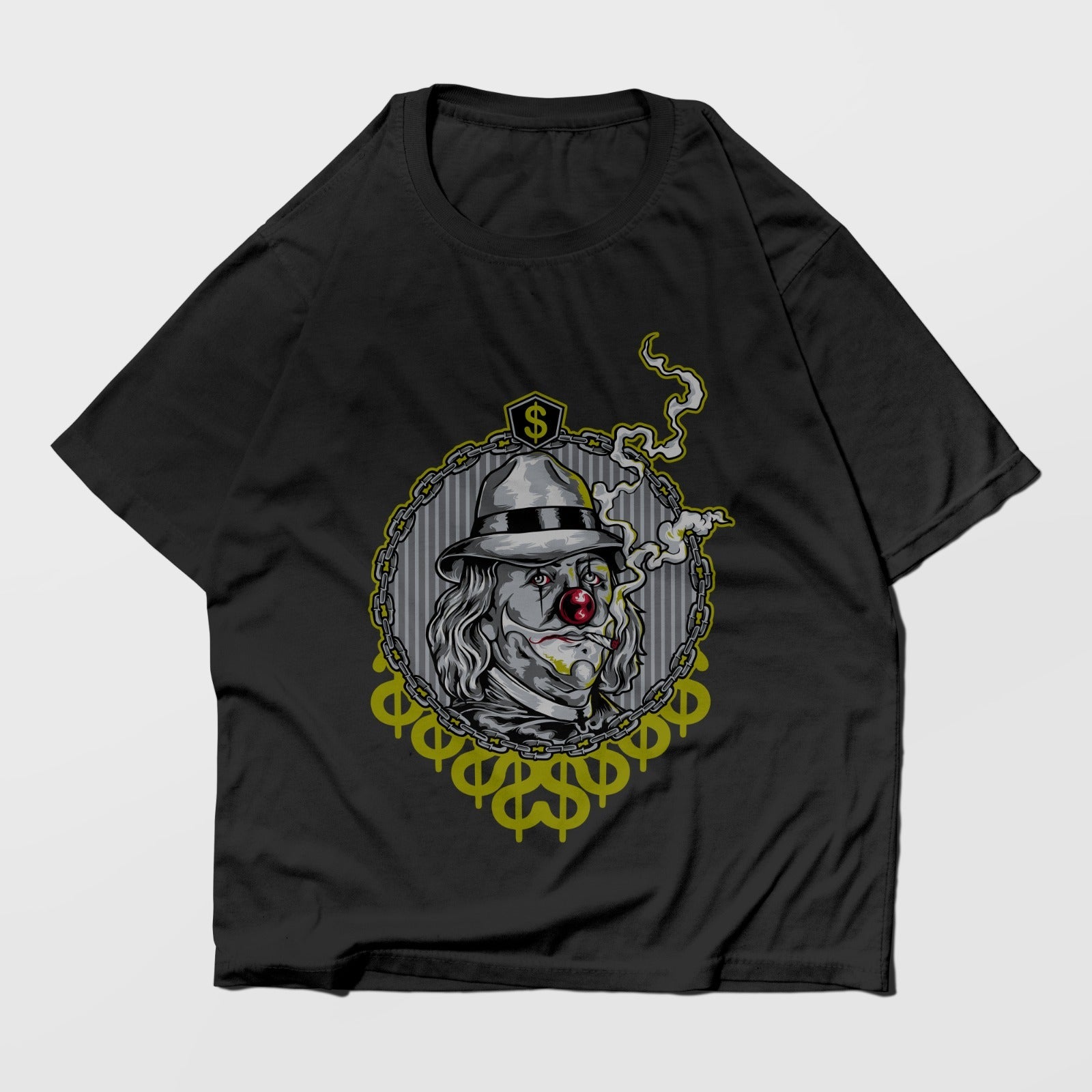 The red-nosed clown's smirk exudes confidence, while the chain and dollar signs add an edgy flair, making this tee a conversation starter. Pair it effortlessly with your favorite jeans or joggers and let the streetwise design become your emblem of rebellion.