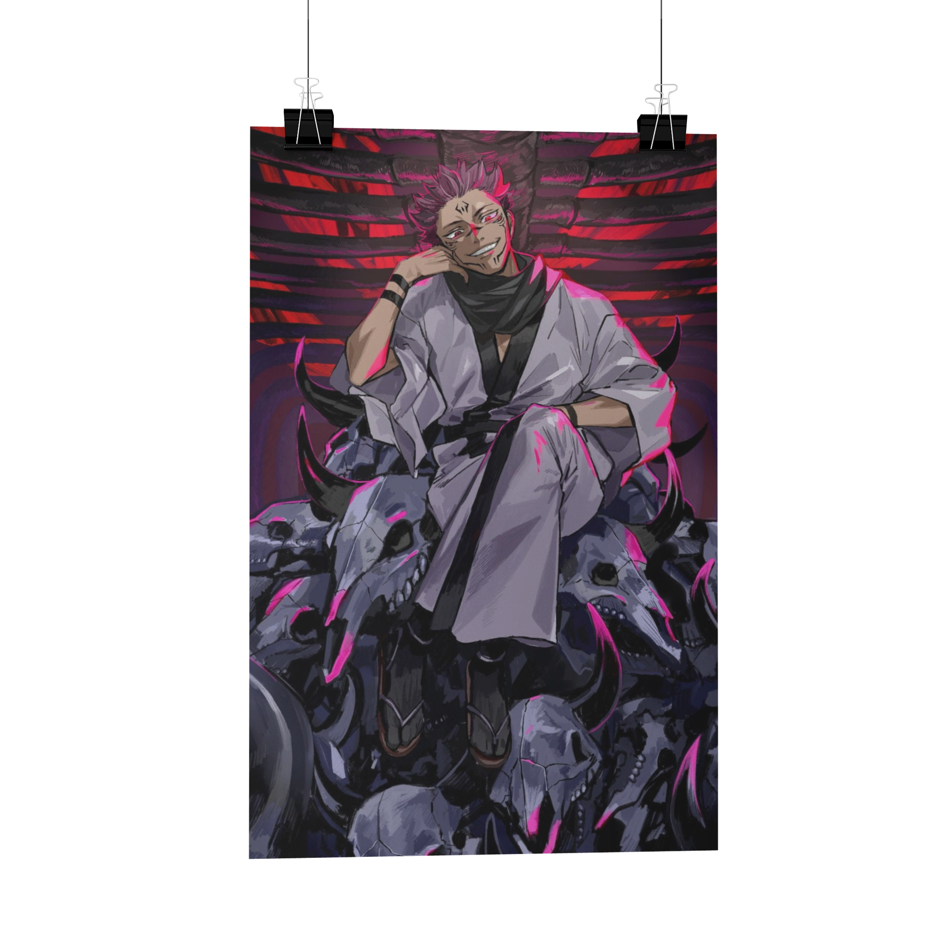 Get ready to bow down to the dark authority with our mind-bending Jujutsu Kaisen A4 Poster - Sukuna's Regal Authority! Witness the undisputed power of Sukuna as he takes center stage in this captivating masterpiece. Draped in a regal white robe, Sukuna sits upon a throne crafted from horned animal skulls, emanating an aura of dark authority that will send shivers down your spine.
