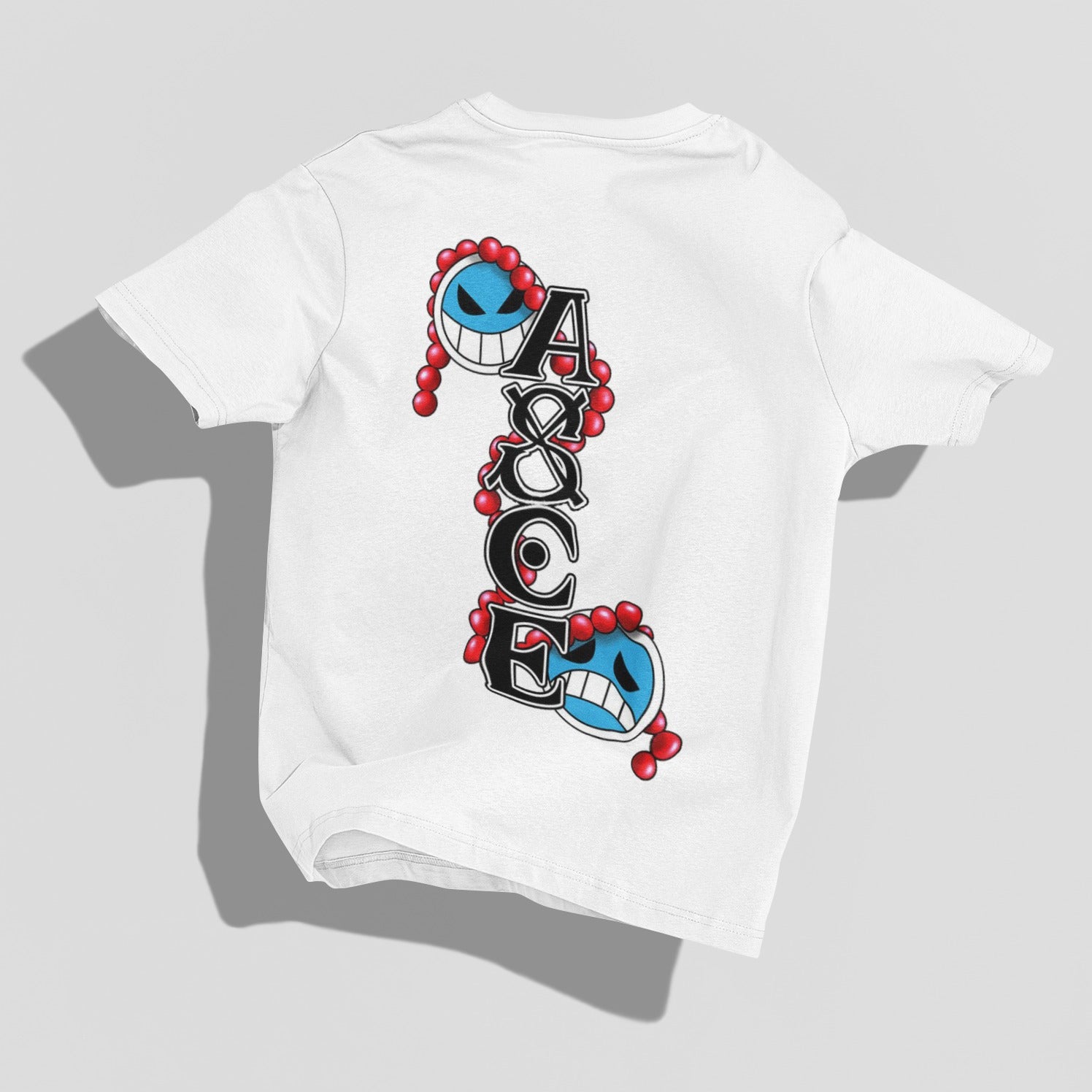 Celebrate the indelible legacy of Fire Fist Ace with our white unisex oversized t-shirt, showcasing a striking design of his iconic "ASCE" tattoo on the back. This captivating tee is a powerful homage to Ace's enduring spirit and formidable power.