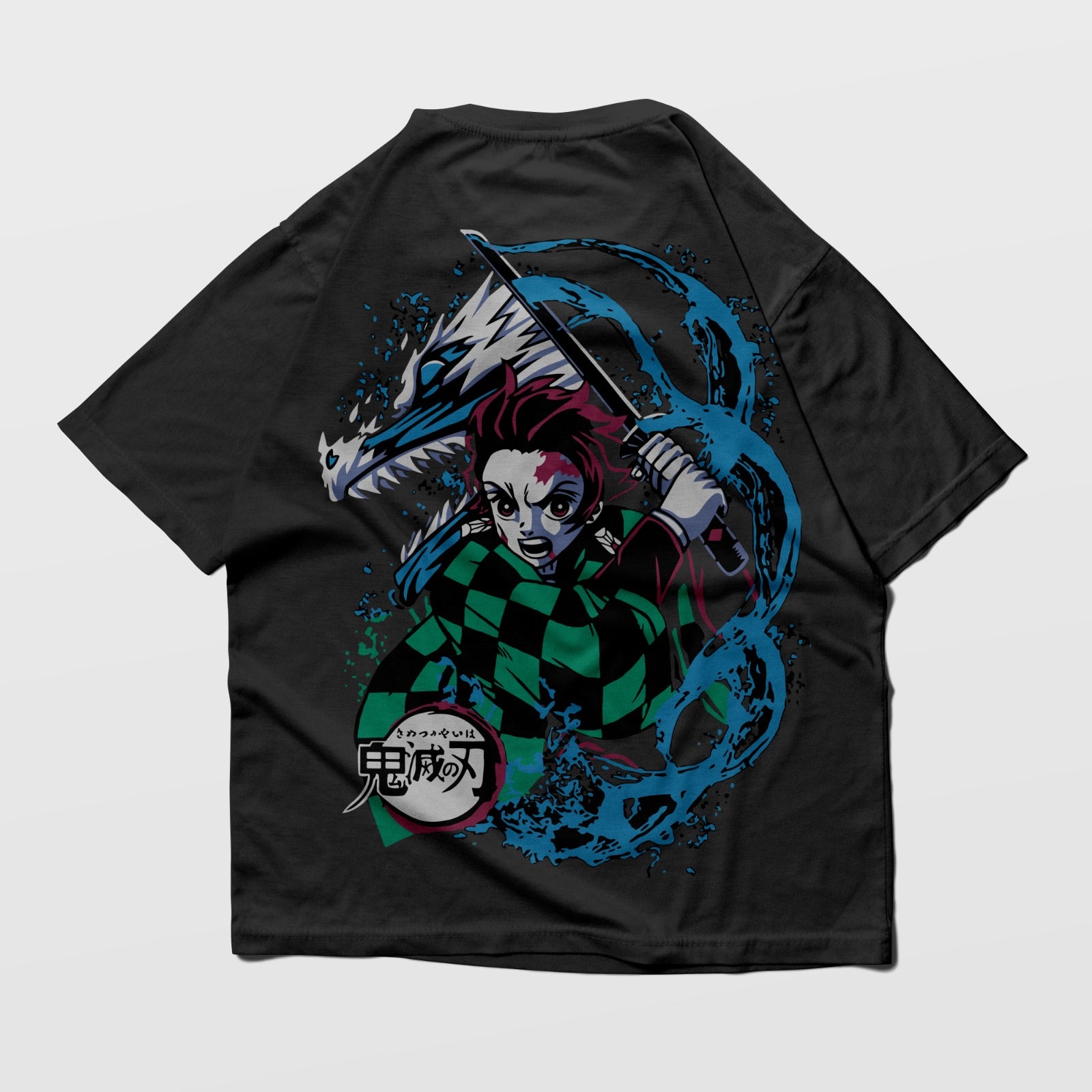 Unleash the water-breathing prowess with our Black Cotton Oversized T-shirt, showcasing the unstoppable Kamado Tanjiro from Demon Slayer in a fierce attack form. Crafted from premium black cotton, this oversized tee isn't just clothing; it's a dynamic canvas that captures the intensity of Tanjiro's water-breathing technique.